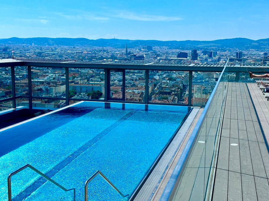 Das Panorama Sky Apartment hat 3 separate Schlafzimmer und ein Wohnzimmer. Es bietet Ihnen eine gemütliche, ruhige Atmosphäre mit perfekter Anbindung in die Innenstadt. Das Highlight ist das Rooftop Infinity Pool, welches in den Sommermonaten für Sie geöffnet hat. Selbstverständlich gibt es kostenfreies WLAN im Apartment. Sie wohnen nur 400 m von der U-Bahn-Station Schlachthausgasse (Linie U3) entfernt. Die Sie in weniger als 10 min direkt ohne Umsteigen zum Stadtkern, dem Stephansplatz bringt.