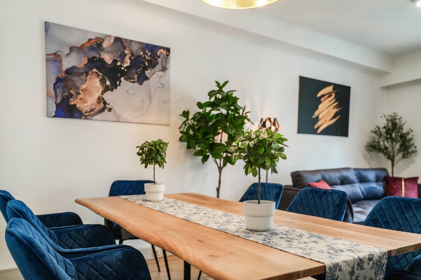 120 Quadratmeter Apartment mit 2 Schlafzimmern und einem Wohn-Schlafzimmer. Dieses stilvolle Apartment bietet Platz für bis zu 8 Personen und ist ideal für Familien oder Gruppen, die Komfort und eine unschlagbare Lage suchen. Raumaufteilung Schlafzimmer 1: Ein gemütliches Doppelbett für erholsame Nächte. Schlafzimmer 2: Ein weiteres komfortables Doppelbett. Wohnzimmer: Zwei bequeme Schlafsofas, die zusätzlichen Schlafplatz für bis zu vier Personen bieten.