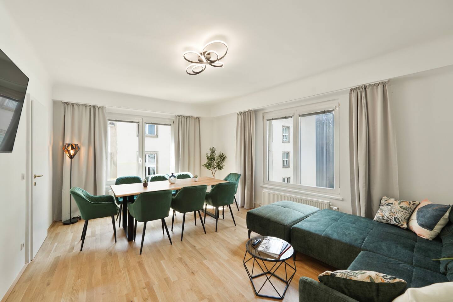 Welcome to your perfect home right in the heart of Vienna! Imagine opening the door to a spacious apartment directly on the iconic Stephansplatz – where the vibrant pulse of the city beats strongest. This stylish retreat comfortably sleeps up to 9 guests and blends timeless Viennese elegance with modern comfort, making your stay truly unforgettable. Unwind in three cozy bedrooms, each equipped with inviting king-size beds that promise restful nights. The expansive living room, featuring a large dining table, sofa, a 60-inch Smart TV, and direct views of St. Stephen’s Cathedral, creates a warm and inviting atmosphere where you can gather, relax, and share the magical moments of your unforgettable trip. Start your day with the breathtaking view of the cathedral as Vienna awakens at your feet. Everything that makes this city so special – from world-class restaurants and charming cafés to the finest sights – is just a short stroll away. As evening falls, return to this serene oasis where stylish design and pure comfort welcome you home. This apartment is more than just accommodation – it’s the perfect launchpad for your Vienna story. Book now and let your dream stay begin! SLEEPING ARRANGEMENTS – 3 BEDROOMS + LIVING ROOM WITH SOFA BED ♛ Bedroom 1: King-size bed ♛ Bedroom 2: King-size bed ♛ Bedroom 3: King-size bed + Queen-size box-spring sofa bed (160x200 cm) ♛ Living room: Sofa bed (150x200 cm) Highlights at a glance: • Prime location in Vienna • Free high-speed Wi-Fi • Fully equipped kitchen • Nespresso machine with complimentary tea and coffee • Washer-dryer combo • King-size beds • Free crib available upon request • Paid parking in nearby public garage • Direct access for unloading by car right at the apartment • Grocery stores and restaurants just around the corner • Check-in: from 3:00 PM • Check-out: by 10:00 AM KITCHEN The fully equipped kitchen with premium stainless-steel appliances invites you to turn every meal into a delight – from relaxed breakfasts and quick snacks to celebratory three-course dinners. ✔ Microwave ✔ Nespresso machine ✔ Stove ✔ Oven ✔ Toaster ✔ Fridge/freezer ✔ Dishwasher ✔ Kettle ✔ Sink with hot and cold water ✔ Trays ✔ Glasses ✔ Cutlery ✔ Pots & pans ✔ Fully stocked with essential cooking utensils Enjoy a few drinks in the living room while dinner is being prepared. Once ready, serve it at the welcoming dining table and savor a delicious meal with your loved ones. We can’t wait for you to find your happiness in this fantastic apartment – whether that means switching off for a while, watching a movie on the big Smart TV, curling up on the sofa with a good book, or recharging with a relaxed stroll through the city center. If you have any questions, just reach out – we’re here to help. Safe travels!
