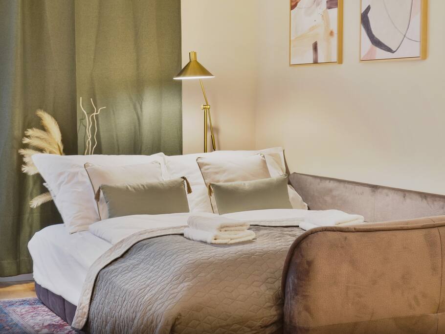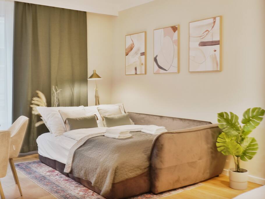 Willkommen in den Stephansplatz Imperial Suite – Ihrem modernen Zuhause im Herzen Wiens. Nur wenige Schritte vom Stephansdom entfernt bietet das etwa 90 m² große Apartment Platz für bis zu 6 Gäste. Zwei Schlafzimmer, ein Wohnzimmer mit Schlafsofa, voll ausgestattete Küche, Waschmaschine und 65" UHD-TV sorgen für Komfort. WLAN, Bettwäsche, Handtücher, Kaffee & Tee sind inklusive. U-Bahn, Restaurants und Sehenswürdigkeiten liegen direkt vor der Tür.